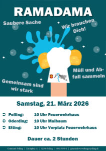 nachdem das Frühjahr unmittelbar vor der Tür steht, wollen wir am Samstag, 21.03.2026 ab 10 Uhr in unseren drei Ortsteilen Müll und Abfall aufsammeln.