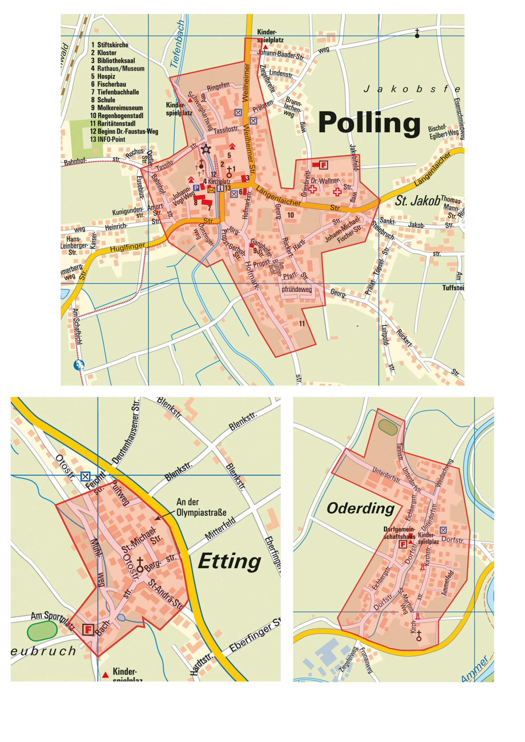 In Polling, Etting und Oderding gehören folgende Bereiche, wie in den nachstehenden Plänen gekennzeichnet, zum Sperrbezirk: